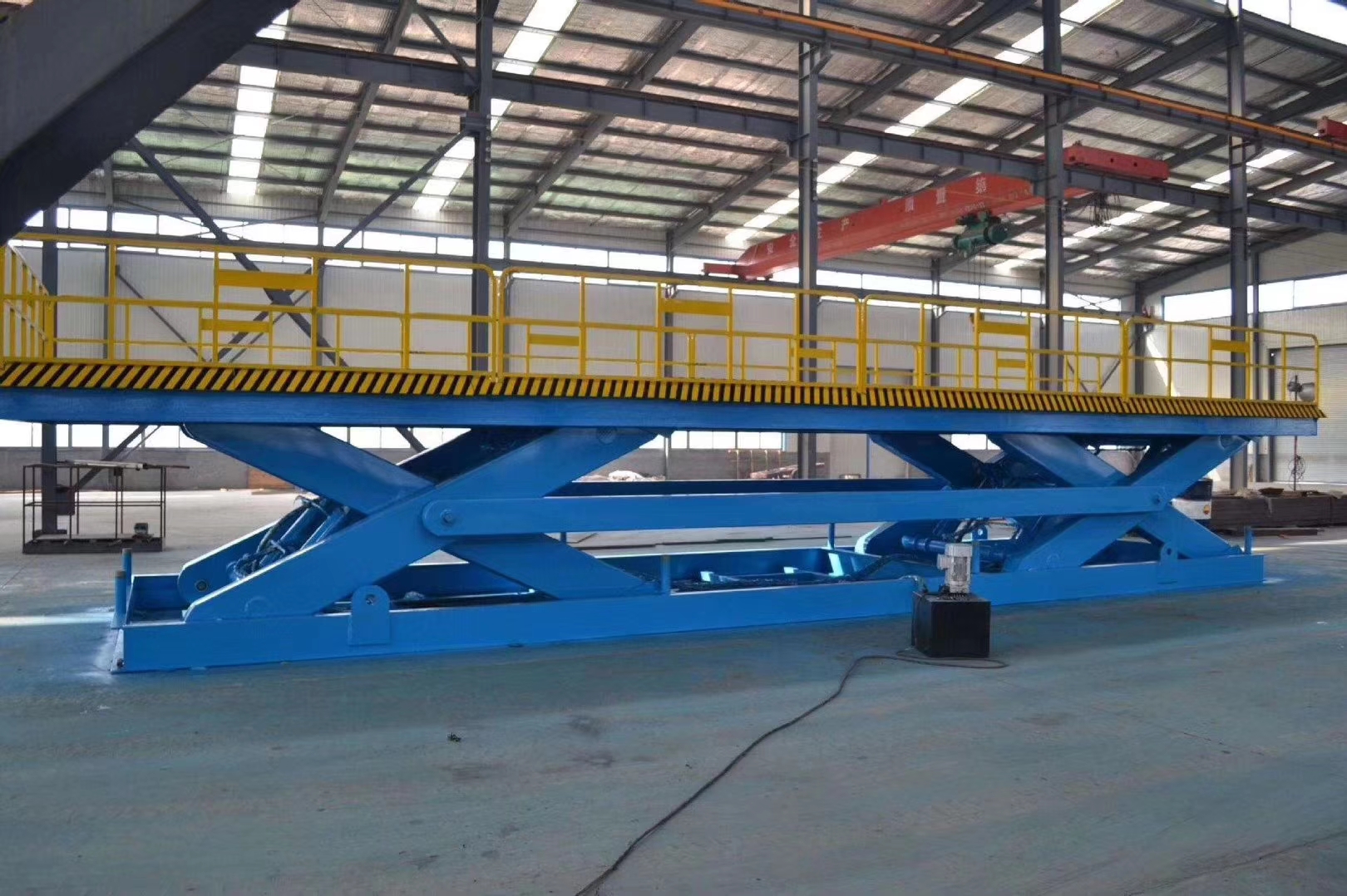 升降動(dòng)力分為220V或380V電源,特殊環(huán)境也可采用防爆泵站及防爆電器。載重1—200噸。采用意大利和國產(chǎn)液壓泵站,臺面使花紋鋼板。它使高空作業(yè)效率更高,安全更保障。